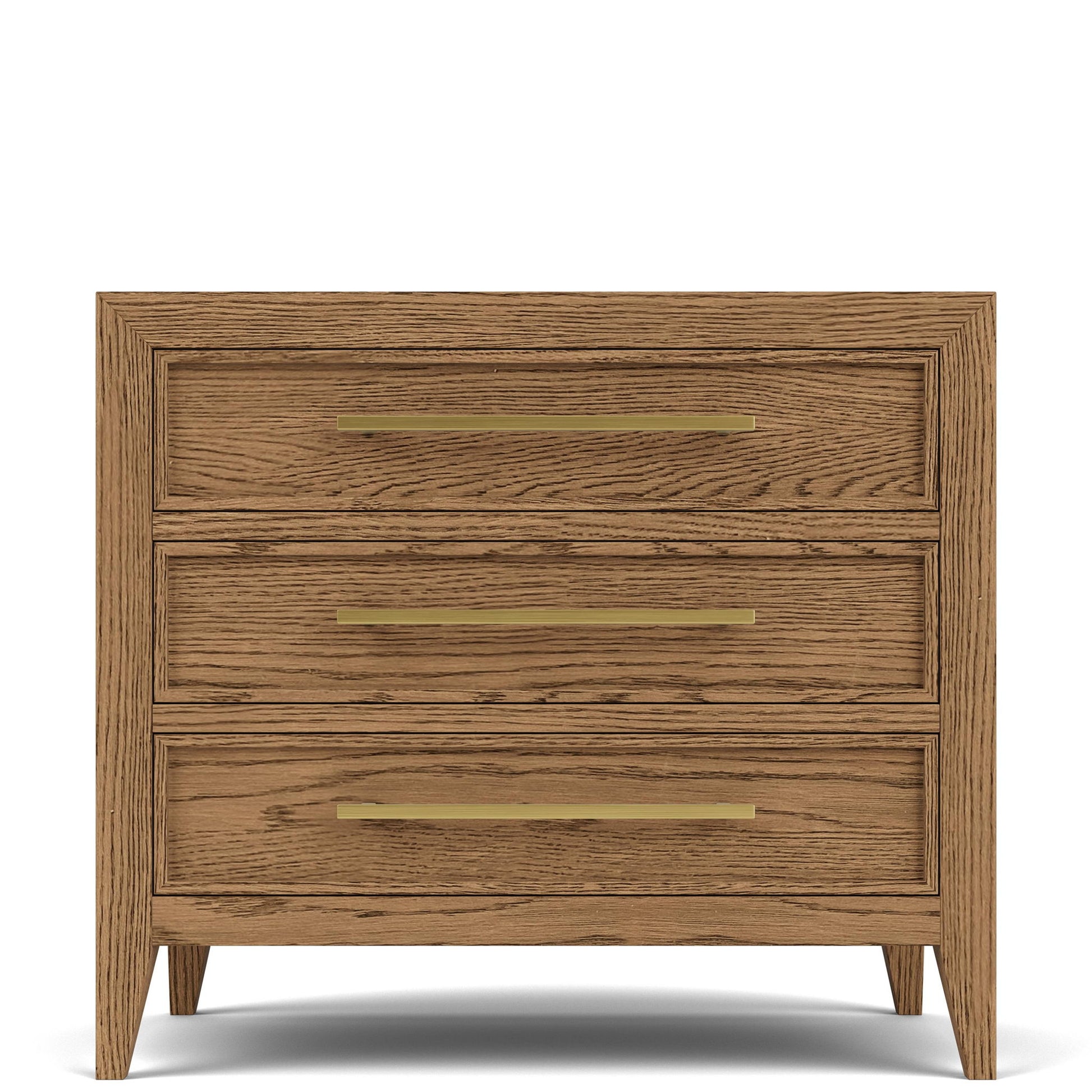 - Three drawers are constructed with dovetail joinery, ball-bearing extension guides, and veneered bottoms