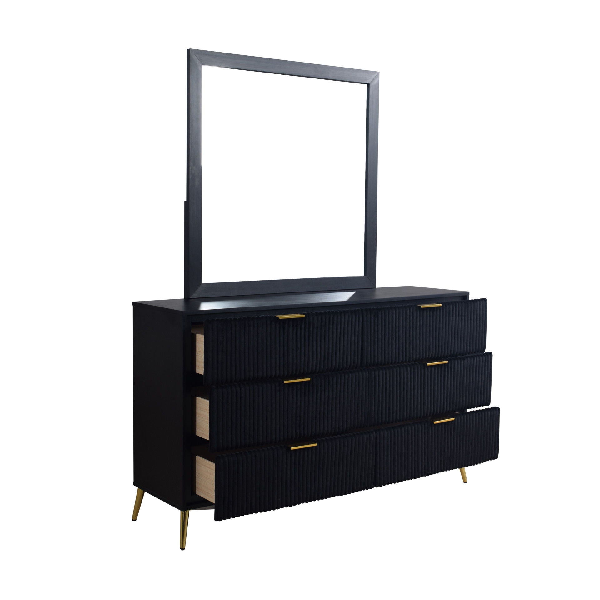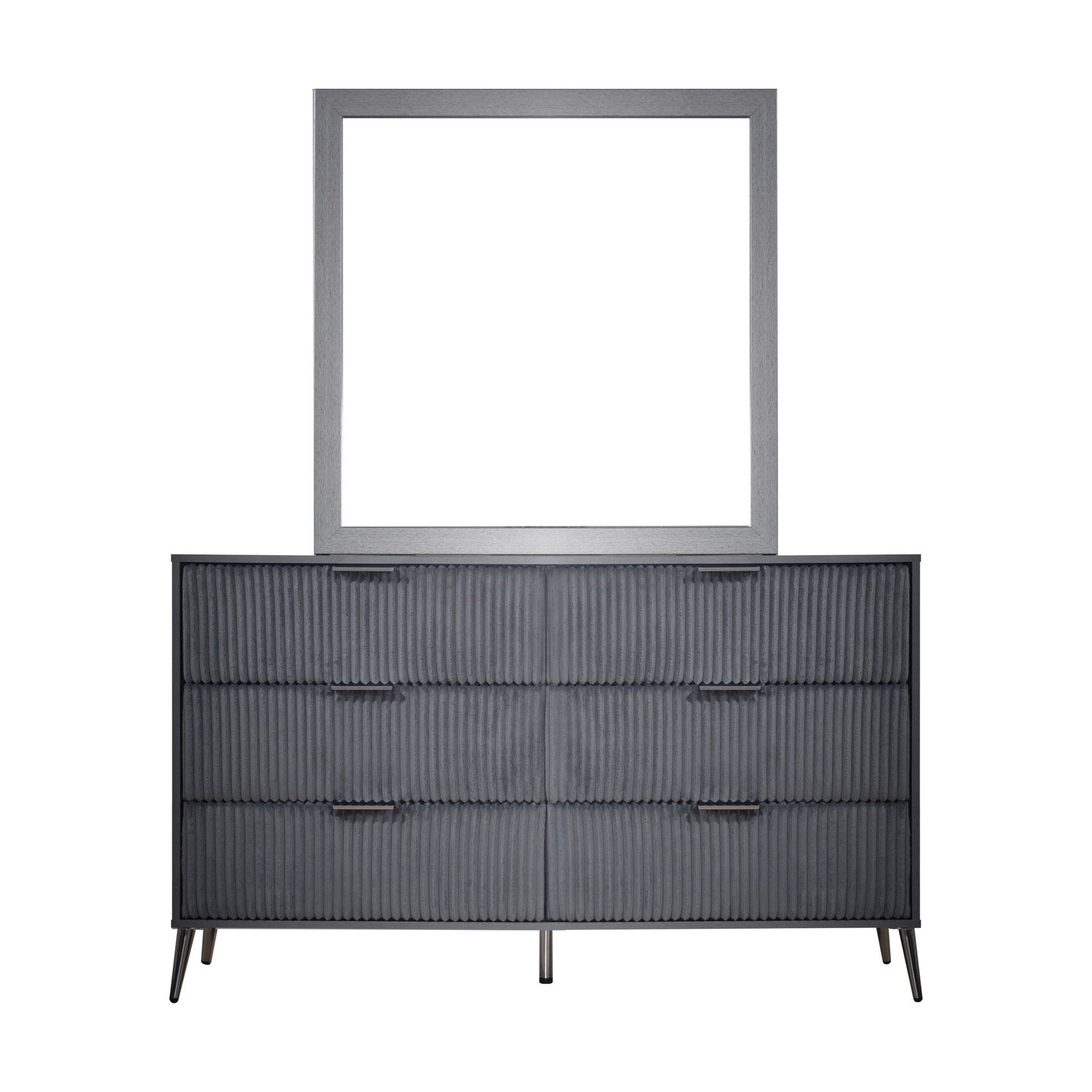 The Kailani Dresser Mirror is a stylish and eco-friendly addition to any bedroom, expertly crafted from a blend of solid rubberwood, engineered wood, and eco-friendly decorative laminate. This construction ensures long-lasting style and sustainability, with the laminate providing superior resistance to scratches, moisture, and stains, making it easy to maintain its beauty over time. The mirror's modern minimalist design, featuring clean lines and a sleek silhouette, embodies contemporary elegance, while the low-distortion glass offers crystal-clear reflection for a true and precise image. This mirror not only enhances the functionality of your space but also adds a touch of sophistication, making it a responsible and chic choice for your home.