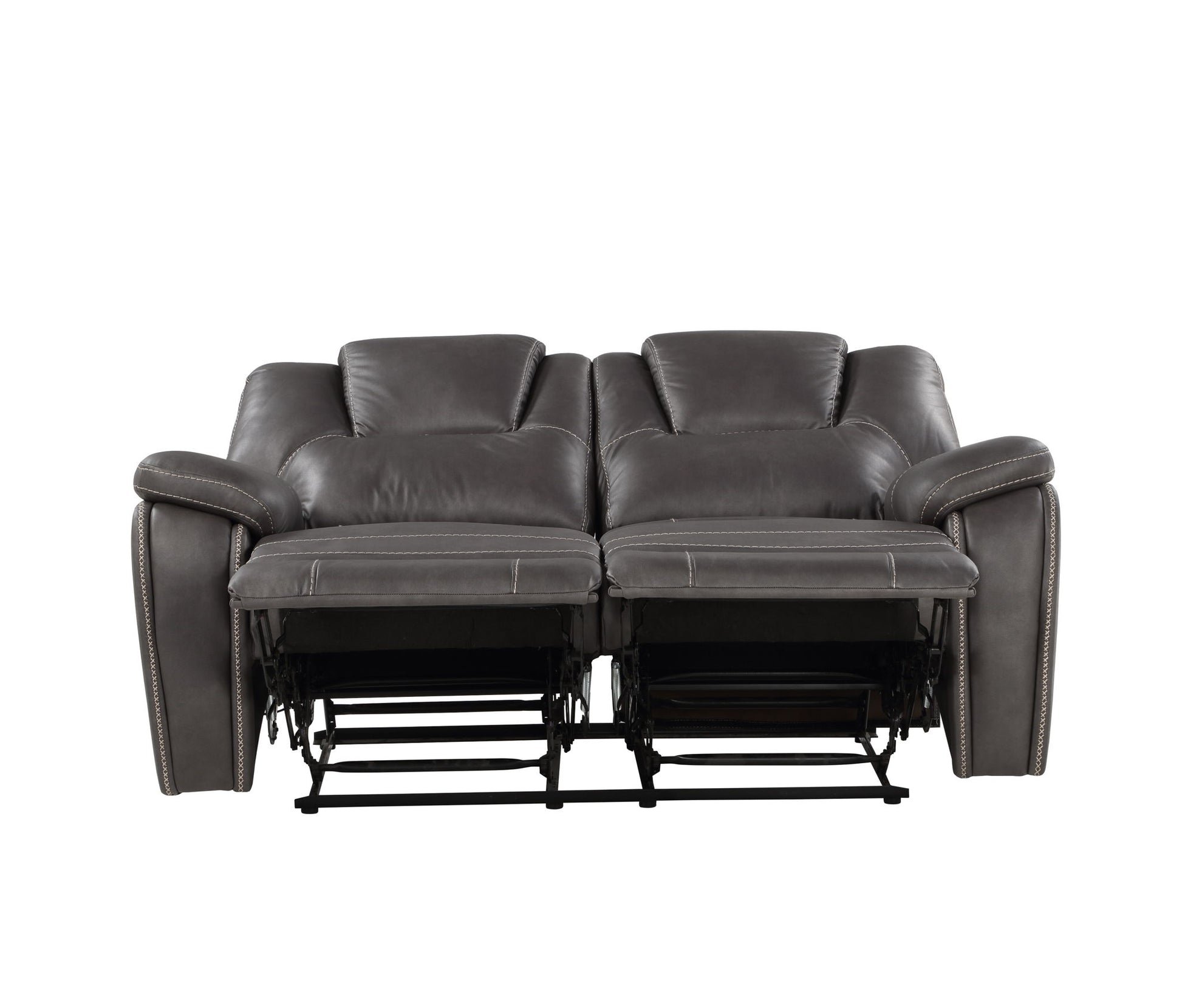 The Katrine Loveseat showcases the best in manual motion upholstery with this dual reclining ensemble. This Loveseat is covered in a luxurious faux-leather that features baseball stitching for an extra special touch. The padded armrests add to the comfort of the Loveseat while the raised, padded headrest enables a comfortable view even when fully reclined.