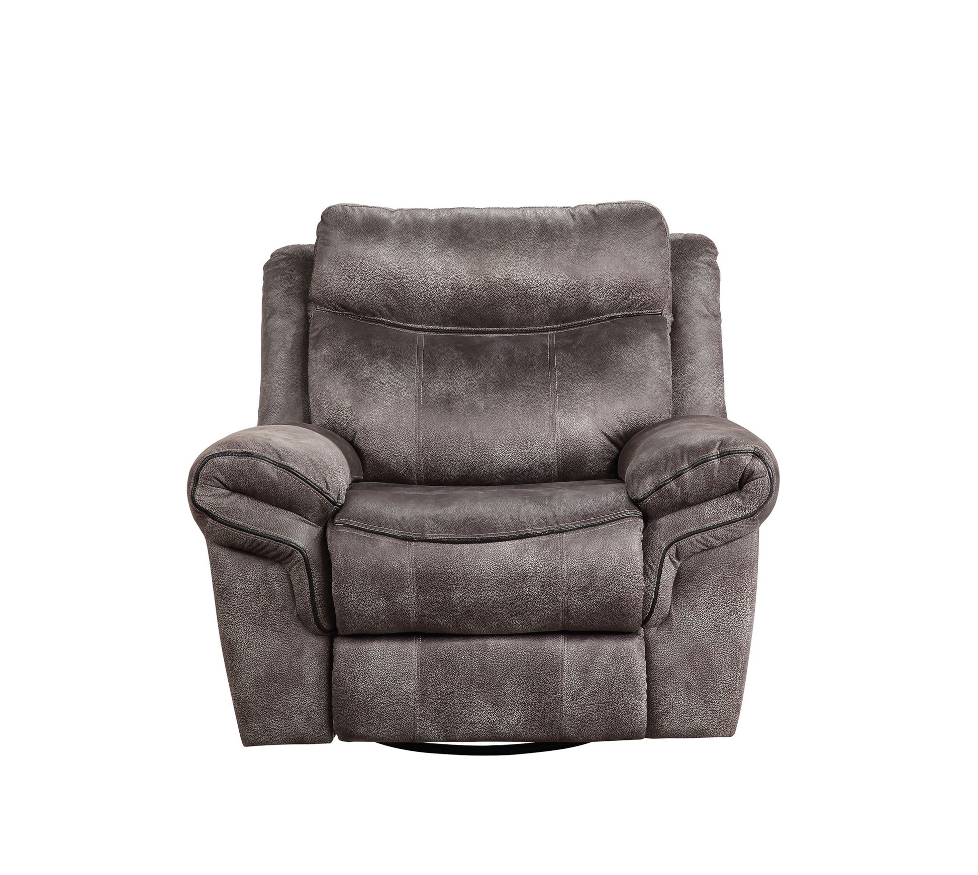 The Nashville cocoa Glider Recliner brings incredible comfort to a room whether reclined or closed. The built-in Glider mechanism adds a comforting gliding motion to the chair while the outside manual lever puts you in a full recline at the flip of a switch. The faux-suede cover is soft to the touch and warms up the room with its cocoa colored cover. Generous arms in an overlapping design add ample padding to complement the lavish seat cushioning for a relaxing reclining experience.
