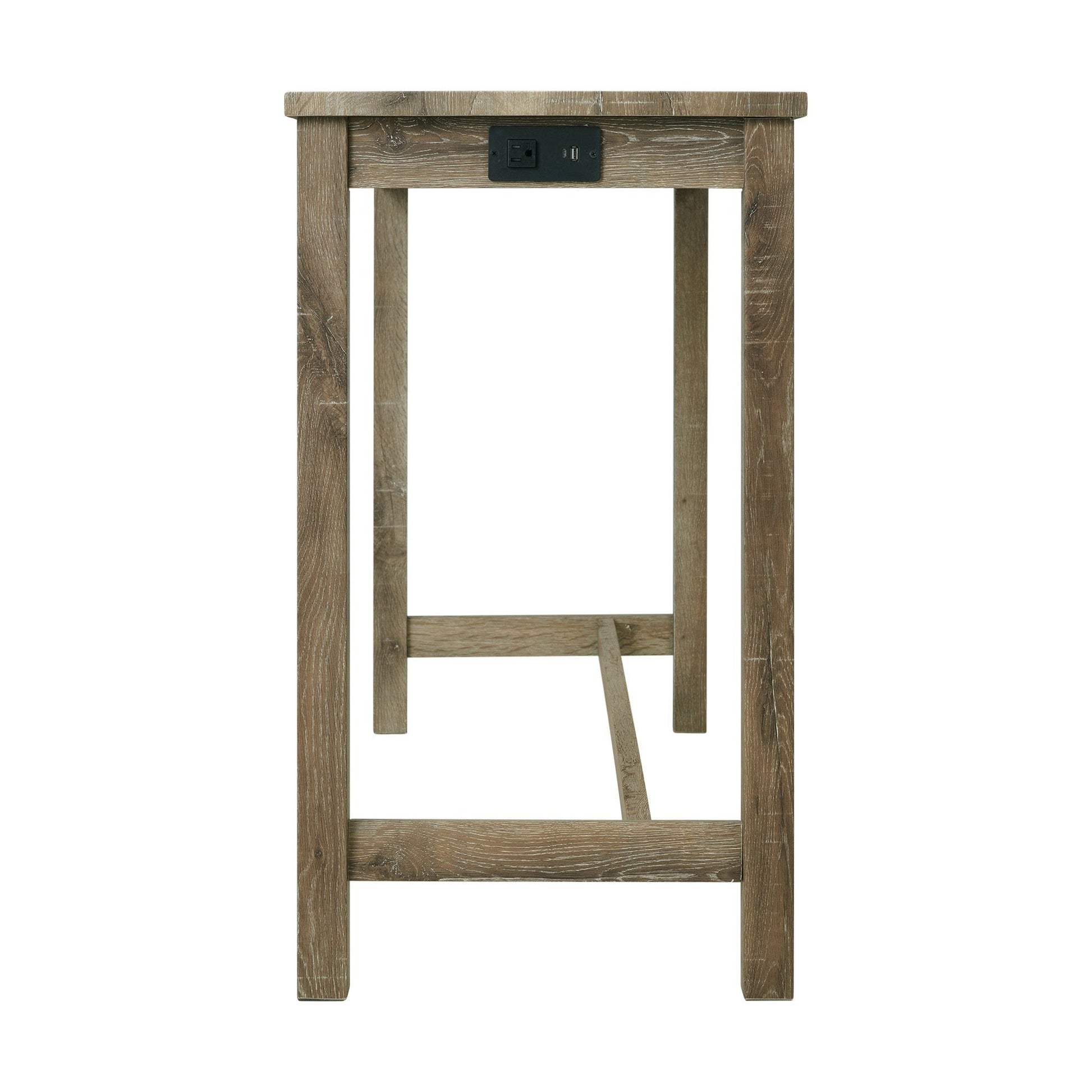 The Oak Lawn Bar Table Set is where functionality and style come together! Easily display this set in the living room or a nook to finish up on some work, while you binge watch your favorite show. USB ports and a power strip allow you to keep your devices charged whether you're working or just scrolling through your favorite apps. The set has a 3D paper finish that features wood grain details throughout. The stools are upholstered in soft, polyester and filled with foam cushioning for plenty of cushioning. Add this unique set to your home today for a look you'll love day after day!