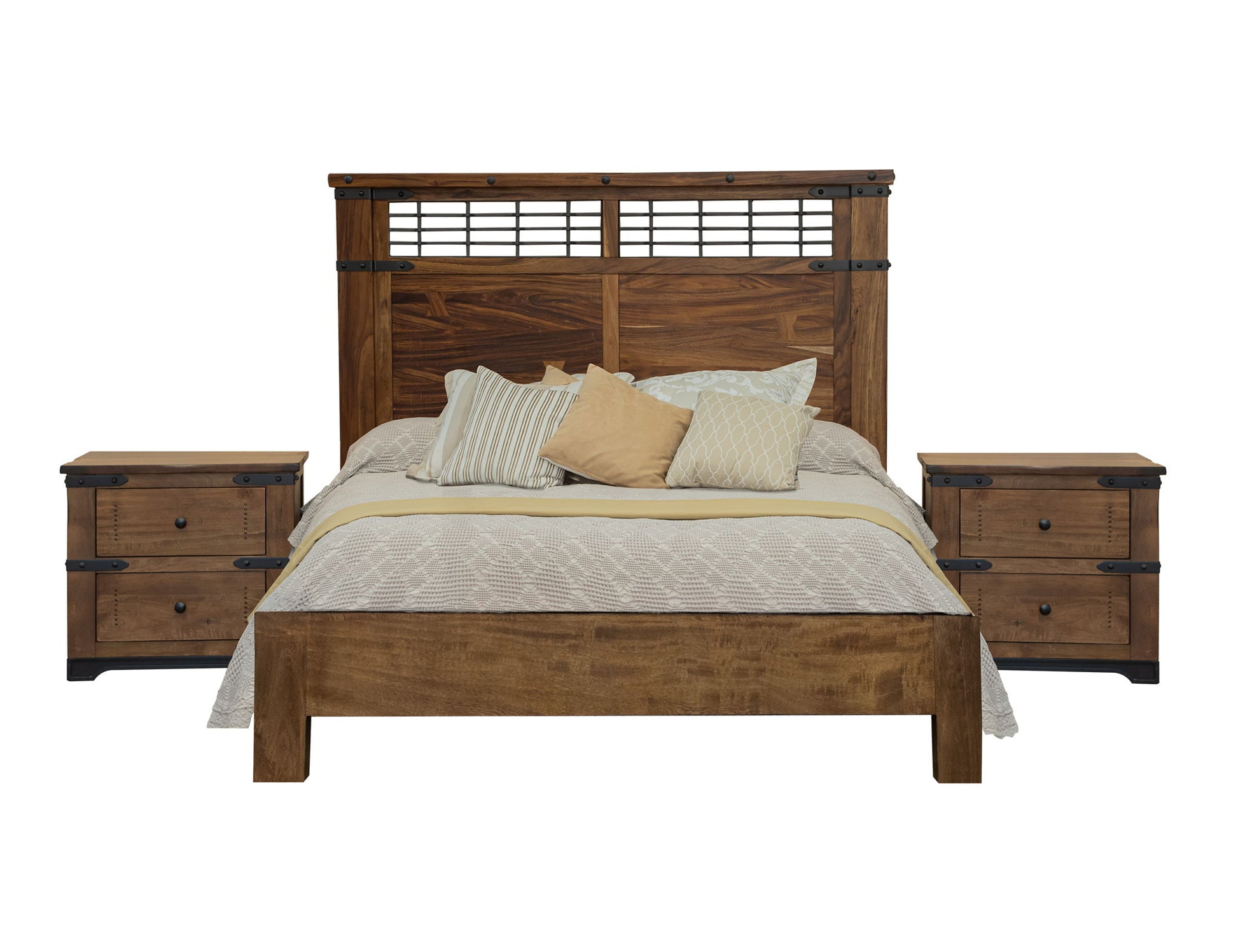 2 Drawer Nightstand. The exceptional Parota collection features a top crafted from Parota wood, a species native to Mexico and South America. This outstanding collection is lightly hand-distressed and incorporates metal details for added elegance.