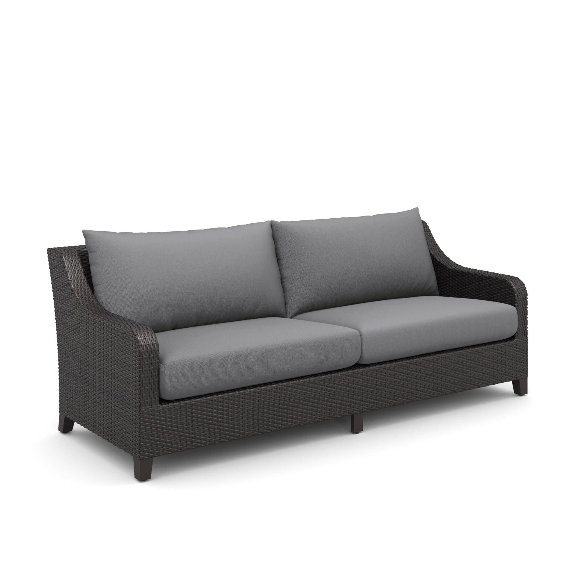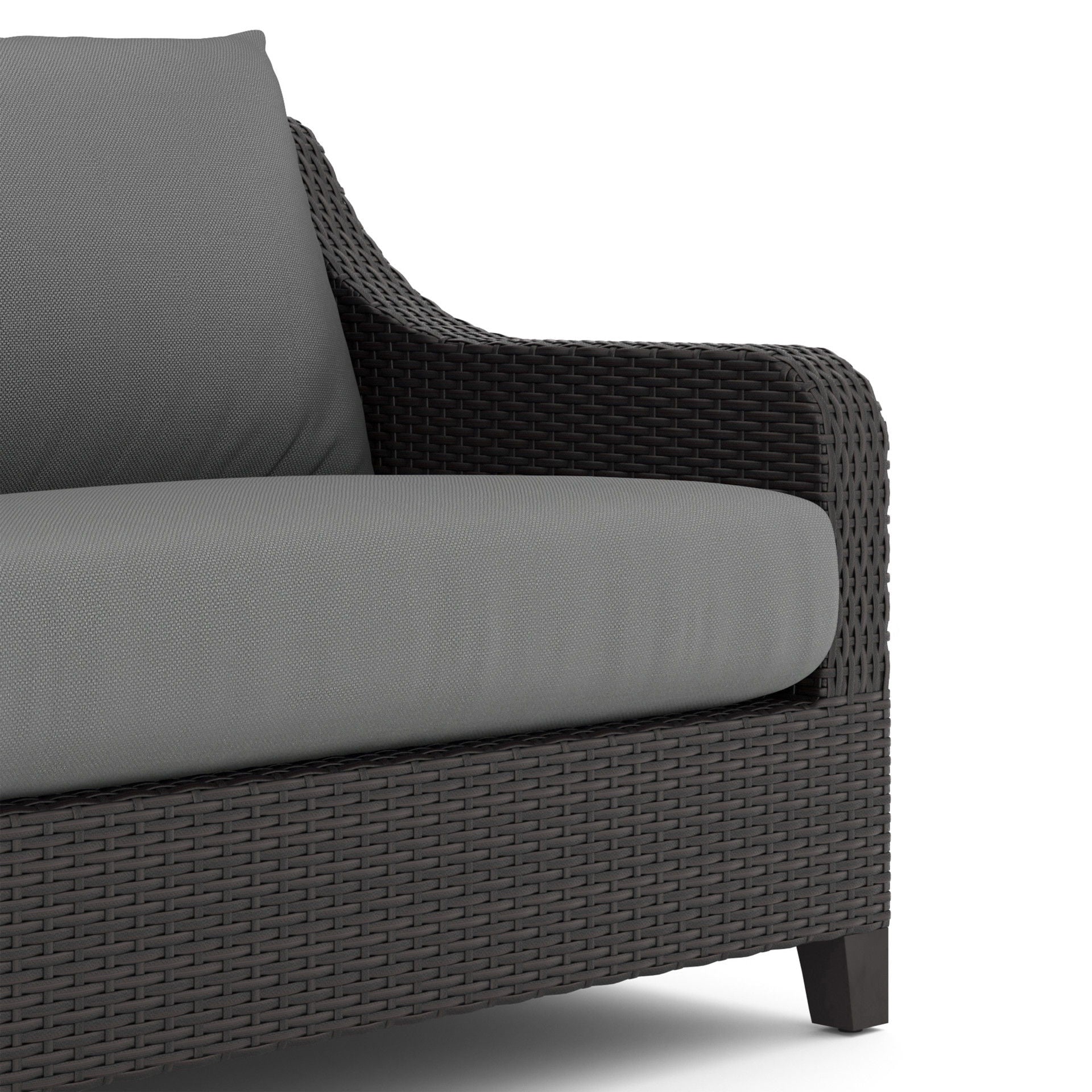Revamp your outdoor space with the Skye 2-piece 3 Seater Sofa, accompanied by a matching Coffee Table. Crafted with aluminum frames boasting a baked-on powder finish, this set ensures robustness and enhanced scratch resistance. Its high-density HDPE Wicker offers all-weather durability, mimicking the look of natural wicker while remaining low maintenance and resistant to water, mildew, and fading. Sink into the supportive 6 1/2" thick seat cushions, crafted from high-density foam for enduring comfort. The exclusive SUNDURA® Olefin fabrics are not only breathable but also colorfast and resistant to water, stains, mold, and mildew, ensuring your outdoor furniture stays pristine year-round. With sweeping backs, thick armrests, and gentle curves, this set exudes a versatile style perfect for any outdoor entertainment area. Plus, the durable powder-coated aluminum slat top coffee table offers convenience for any occasion, whether it's drinks, snacks, or simply a spot to rest your feet.