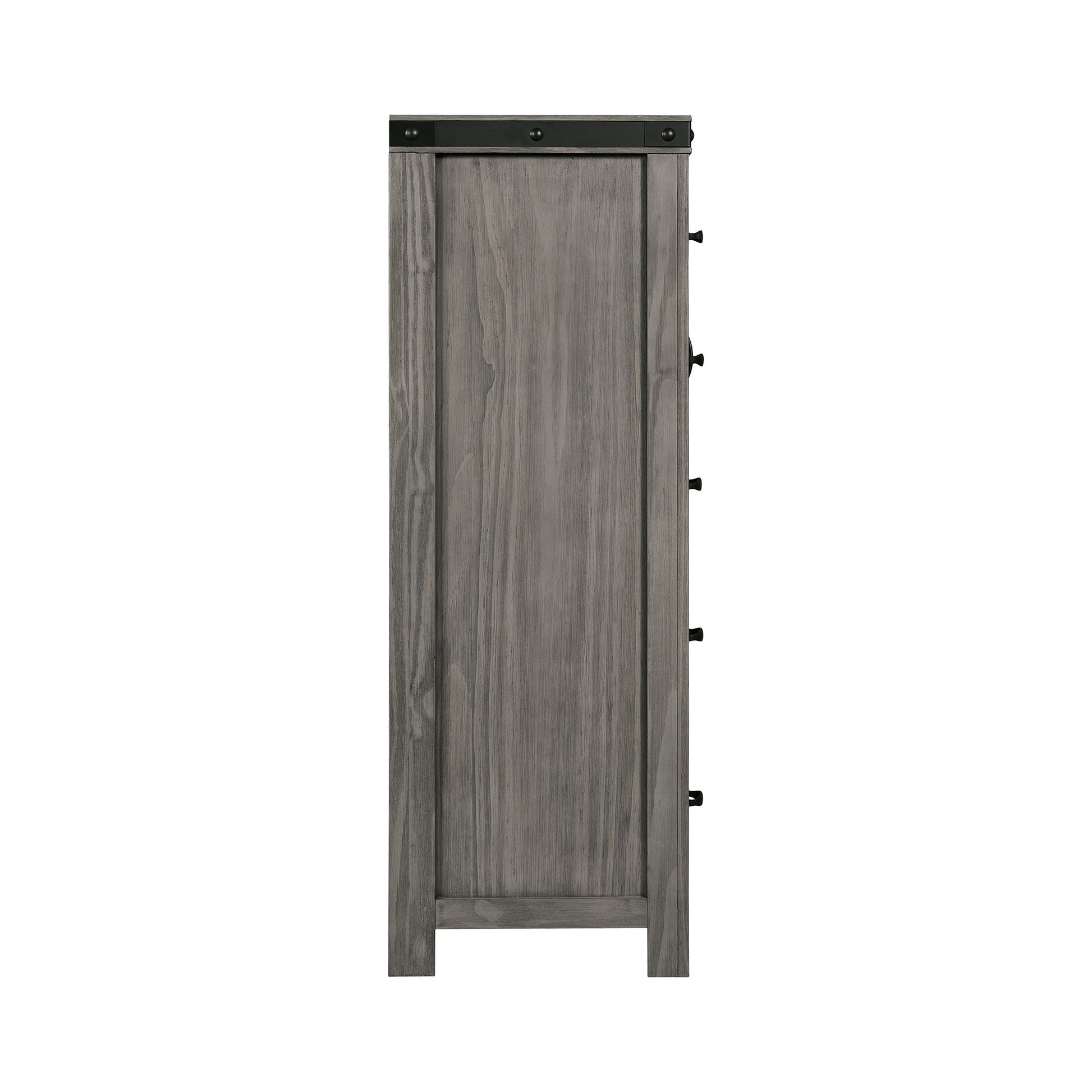 The Wade 5-Drawer Gentlemans Chest is the ultimate chest for your bedroom! This chest comes with five, spacious drawers; perfect for easily keeping all of your belongings neatly stored away. This piece also comes with a cabinet with interior shelves for extra storage space. The bottom drawer features a dust proofing layer to help protect your belongings. The drawer pulls and trim along the top of the chest are both metal with a black finish. Along the trim on the chest are decorative bolts, adding a little extra flair. Please note wood grains vary piece by piece and will not look exactly like the picture.