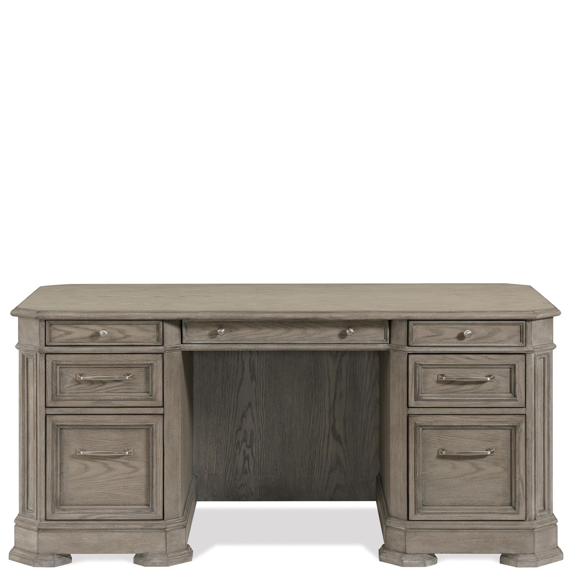 - Center drop-front drawer has ball-bearing extension guides, an electric/USB power outlet, and wiring access cutout